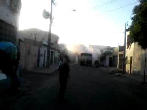 Policiais militares que estão no local afirmam que o incêndio foi motivado em represália à morte de um garoto assassinado na Messejana.